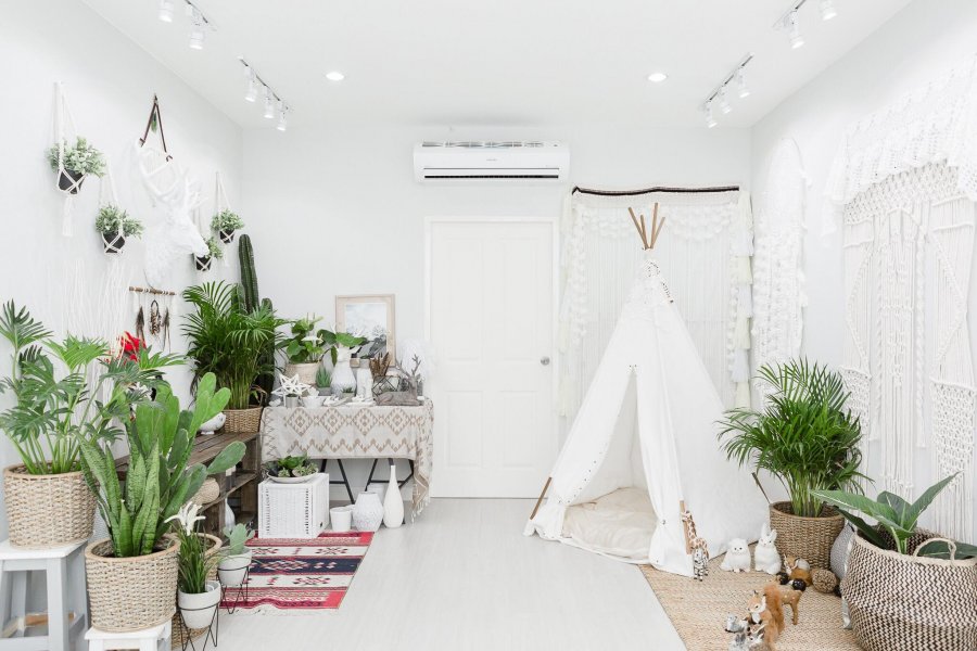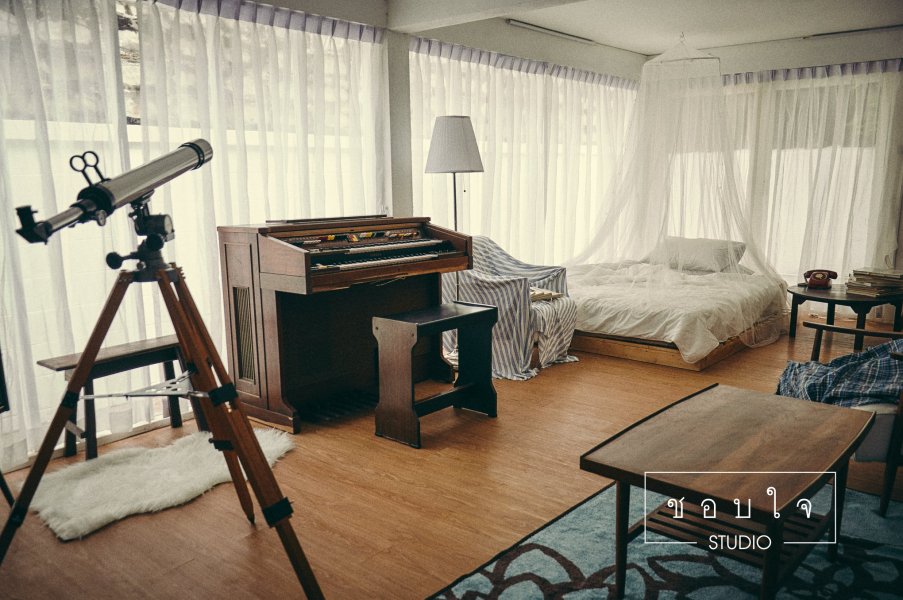 สตูดิโอแนวโมเดิร์นให้กลิ่นอายสไตล์วินเทจ มีให้เลือกใช้ 4 ห้องด้วยกัน B/W Room ห้องนอนสีขาวดำ เน้นความมินิมอลและแสงธรรมชาติ เซตแสงนุ่ม ๆ แบบไม่ต้องใช้เทคนิคอะไรมากมายด้วยผ้าม่านโปร่งแสง ห้อง Tropical mystic ห้องสีเขียวเข้ม ตกแต่งสไตล์ Mystery และใช้เฟอร์นิเจอร์ โซฟาเบาะหนังให้ความรู้สึกเหมือนหนังดังเชอร์ล็อกโฮล์มส์ เพิ่มต้นไม้ประดับแบบ Tropical ช่วยลดความขึงขังของห้อง ไฮไลต์ของที่นี่ต้องยกให้ห้องนี้ Vintage Room ห้องโทนอบอุ่น สไตล์วินเทจญี่ปุ่น ตกแต่งด้วยเฟอร์นิเจอร์ไม้สีอ่อน เข้ากับชั้นเก็บของแบบจักสาน ห้องนี้เขาได้รับแรงบันดาลใจมาจากห้องตัดเสื้อสมัยก่อน เป็นห้องละมุนแล้วก็น่ารักมาก ๆ ห้องสุดท้าย Pastel ห้องสีสดใสหัวใจสีชมพู ได้รับแรงบันดาลใจมาจาก Afternoon Tea ห้องจิบชายามบ่าย เหมือนเข้าไปอยู่ใน Alice in the wonderland เลยล่ะ
