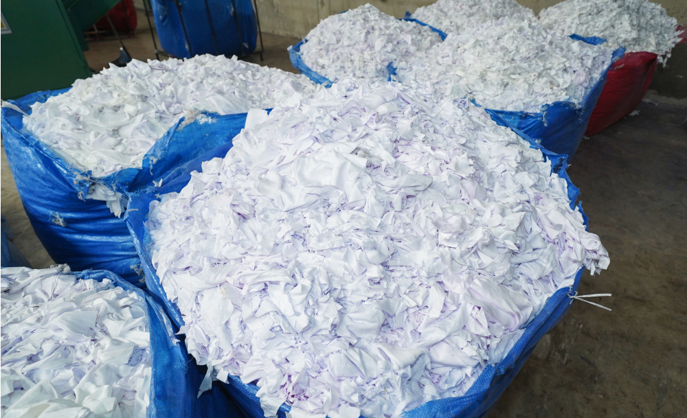 หนึ่งในผู้ผลิตในบ้านเราอย่าง SC GRAND ซึ่งพยายามพัฒนาการผลิตให้เป็นมิตรต่อสิ่งแวดล้อมมาตลอดหลายทศวรรษเลยเปิดบ้านให้เราได้ดูกระบวนการผลิตผ้าแบบไม่ (ค่อย) เบียดเบียนสิ่งแวดล้อม รวมถึงพาไปดูผลผลิตของการรีไซเคิลผ้าแบบใกล้ ๆ ชัด ๆ เลยว่า ความเชื่อเดิม ๆ ที่ว่าผ้ารีไซเคิลมีไม่กี่เนื้อ ไม่กี่สี นั้นไม่เป็นความจริง ซึ่งทางแบรนด์ก็พร้อมจะผลิตไอเทมแฟชั่นอย่างยั่งยืนให้กับทุกแบรนด์สินค้าที่สนใจด้วย