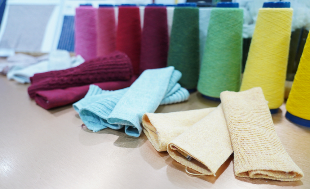 คุณวัธบอกว่าในยุคแรก ๆ การนำเศษผ้าเก่าไปปั่นเป็นเส้นด้ายทำออกมาได้เพียงสีขาวกับสีครีมเท่านั้น ด้วยความที่กำหนดตัวผ้าวัตถุดิบยาก และกระบวนการก็ซับซ้อน แต่ในยุคปัจจุบัน เทคโนโลยีมันไปได้ไกลกว่านั้นมาก และด้วยประสบการณ์ยาวนานในวงการสิ่งทอ ทำให้ SC GRAND สามารถครีเอตสีสันให้กับเส้นใยรีไซเคิลได้หลากหลาย จนสามารถเป็นตัวเลือกทดแทนการผลิตขึ้นใหม่ได้แล้ว ไม่ว่าลูกค้าจะอยาก Customize เป็นสีใดเฉดใดก็ตาม